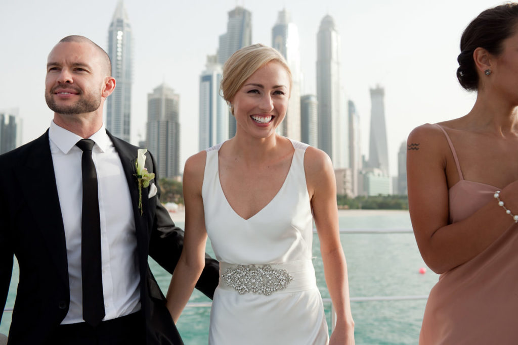 Dubai and its bold architecture is a very interesting place itself to photograph. If you add Cassandra and Cameron’s Wedding Photography One and Only The Palm, one of the most stylish Moroccan-influenced resort, then you have a blast as a photographer. Being from Down Under, Cassandra and Cameron have been based in Dubai for a couple of years. They picked the beautiful One & Only Royal Mirage Resort — The Palace — for their symbolic wedding ceremony. The late warm afternoon sun was setting up the mood by the beach. The wedding reception was a quick boat ride away to the other part of the Resort in the One & Only — The Palm — located at the far end of the Palm Jumeirah. The view of the Jumeirah skyline was especially stunning at nightime. Thank you Cassandra and Cameron for your warm welcome and for being so easy-going. It was great fun to be part of your special day!!